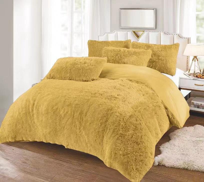 1 velvet bedsheet 2 pillow cases 2 cushions 1 fluffy duvet